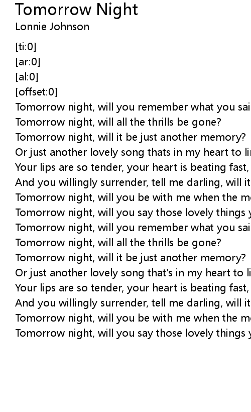 Tomorrow Night 歌词