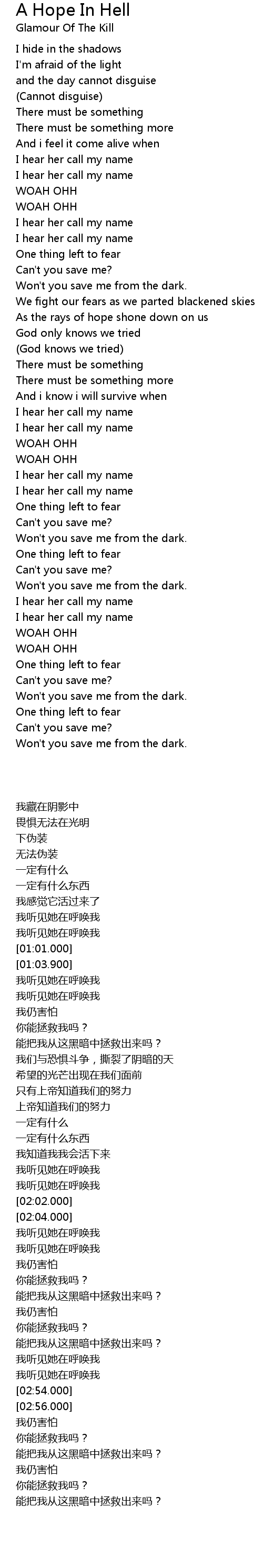 Won't you save me from the dark. |