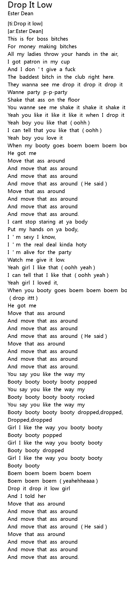 | [00:44.24] | Yeah you like it like it like it when I drop it real low. |