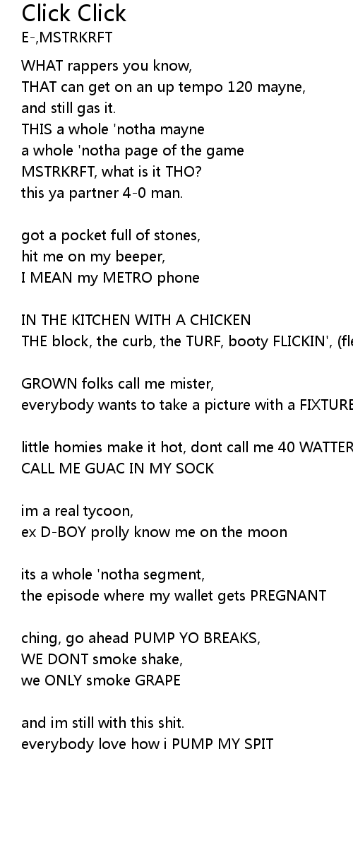| ching, go ahead PUMP YO BREAKS, | |