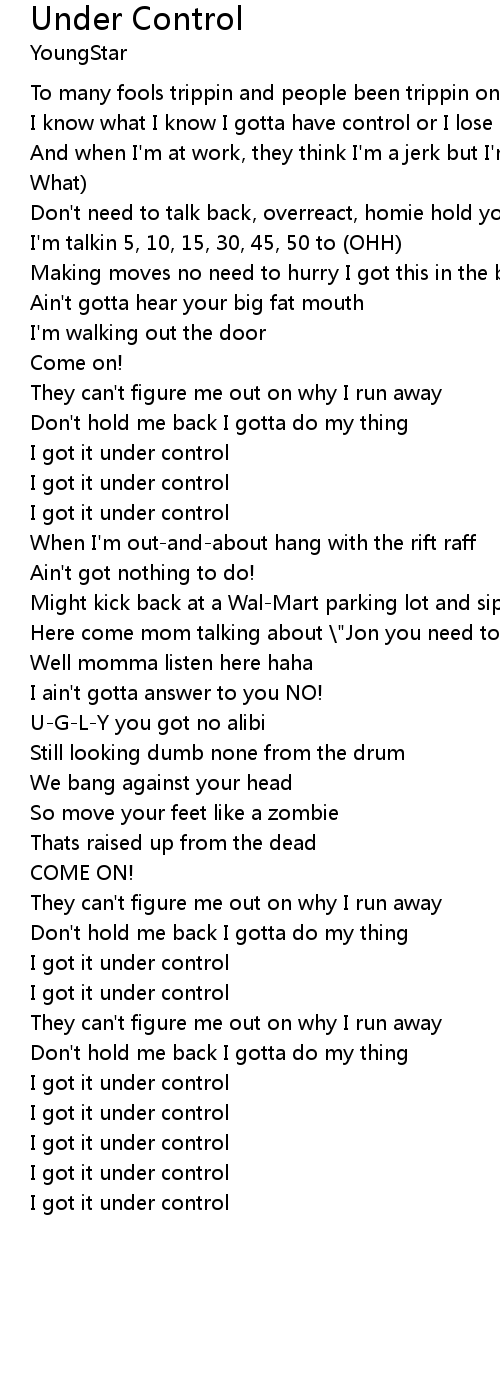 I know what I know I gotta have control or I lose my mind |