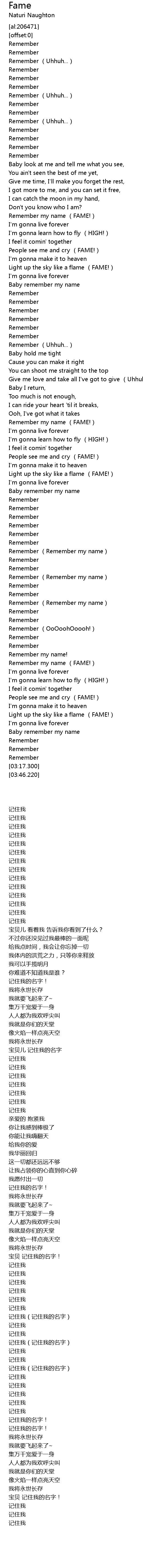 | [00:42.970] | Remember my name (FAME!) |