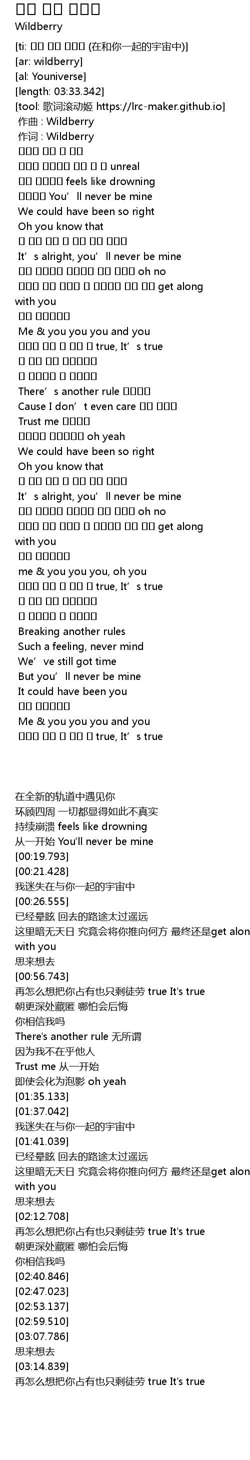 | [01:38.317] | 我迷失在与你一起的宇宙中 |