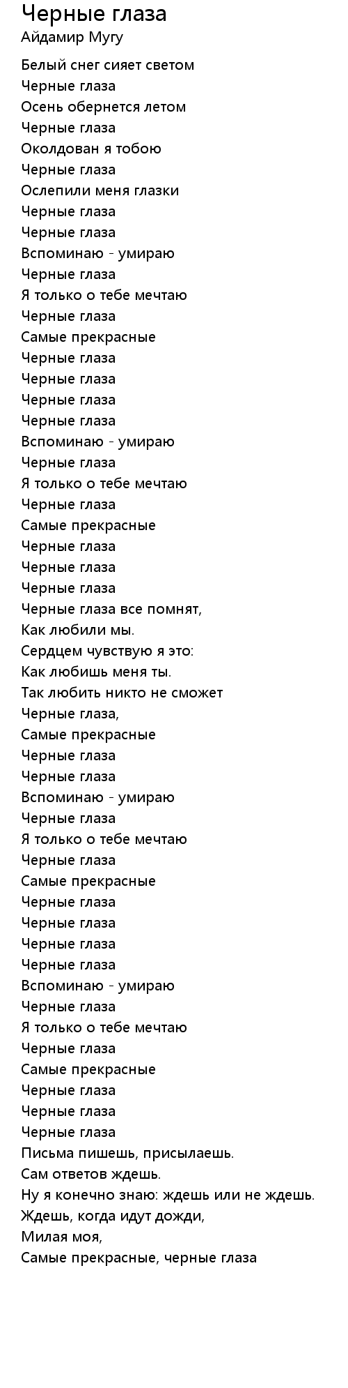 Черные глаза 歌词