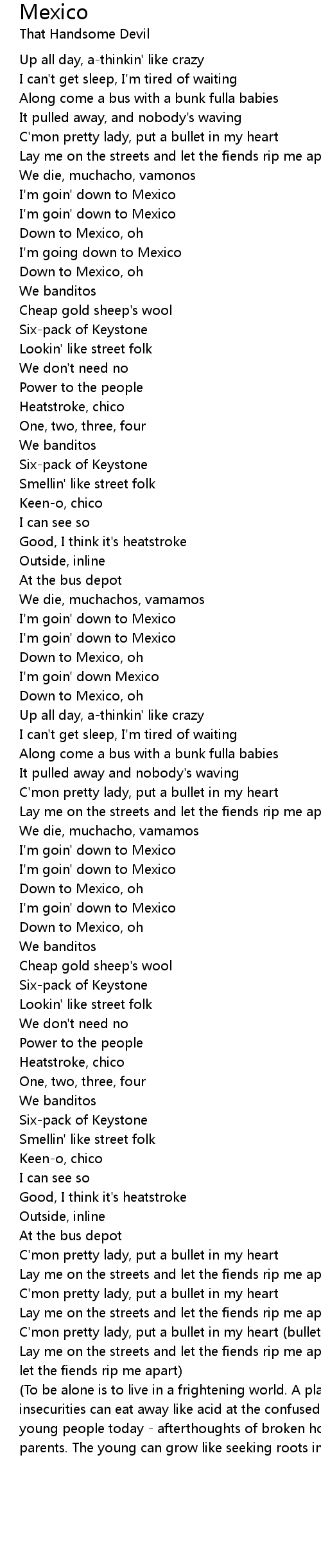 Down to Mexico, oh |