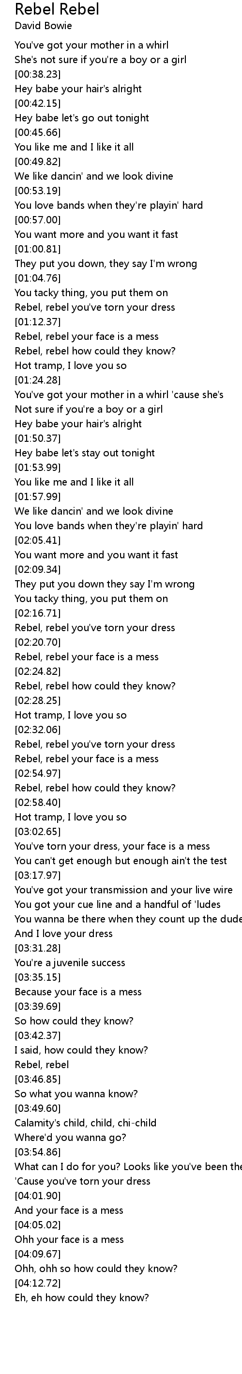Rebel, rebel you've torn your dress |
