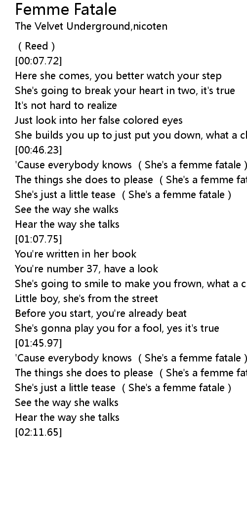 | [01:46.30] | ' Cause everybody knows She' s a femme fatale |