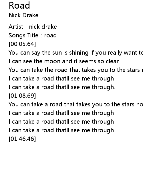 | [00:44.37] | You can take the road that takes you to the stars now |