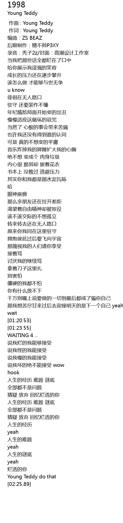 | [00:01.000] | 作词 : Young Teddy |