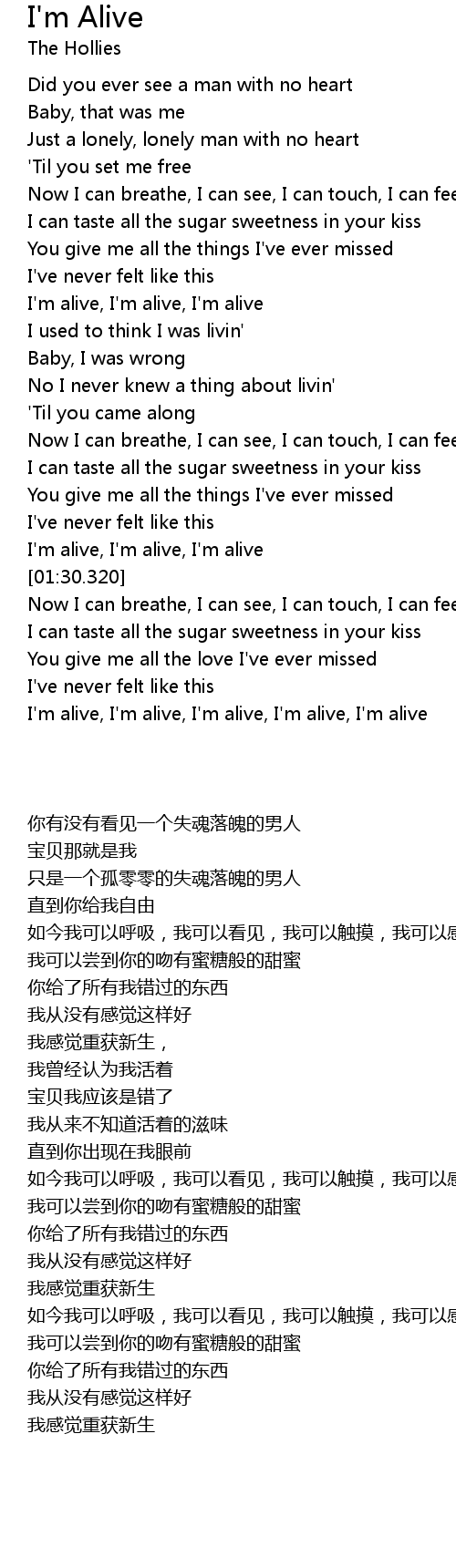 | [00:41.460] | I'm alive, I'm alive, I'm alive |
