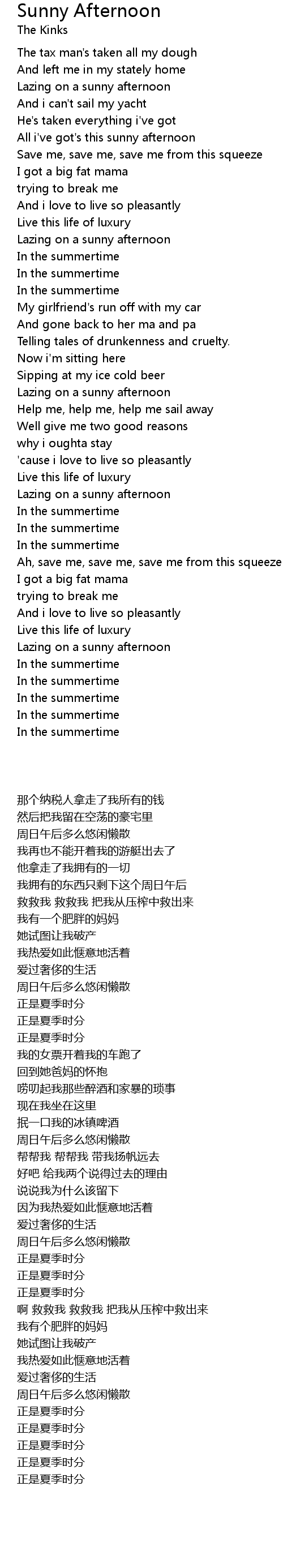 | 歌曲 | Sunny Afternoon |