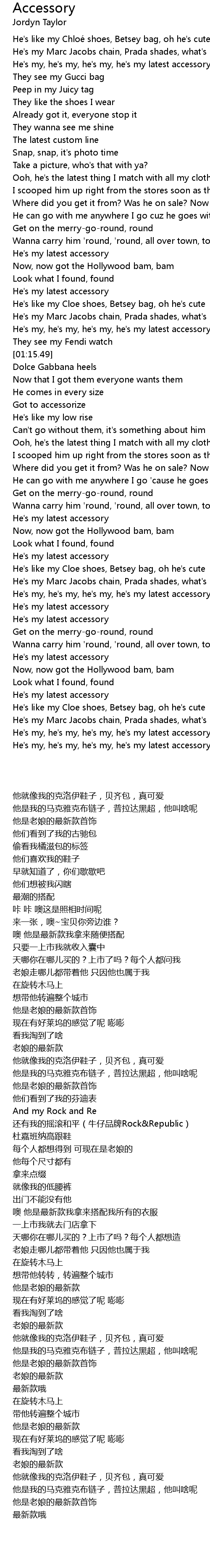 | [02:53.99] | He's my, he's my, he's my, he's my latest accessory |