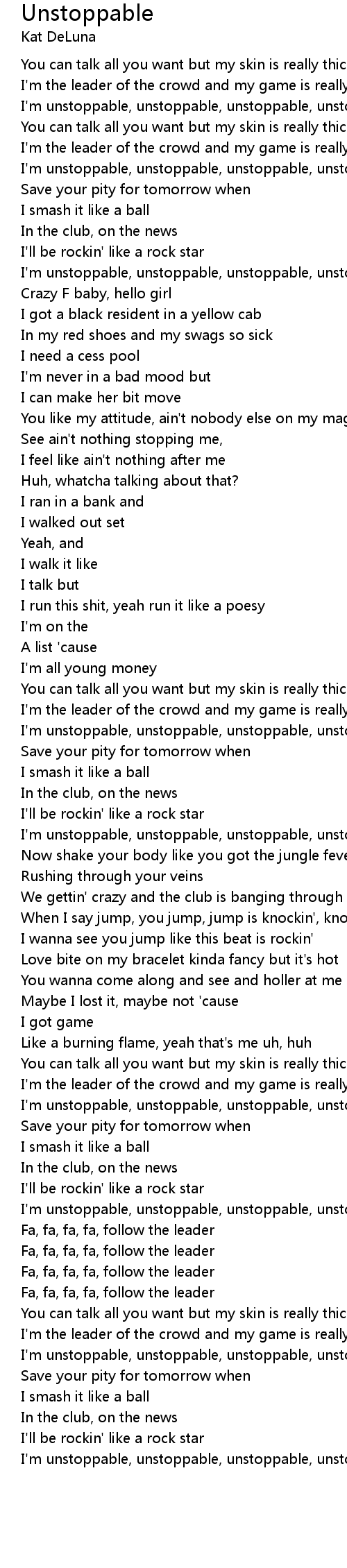 I'm unstoppable, unstoppable, unstoppable, unstoppable |