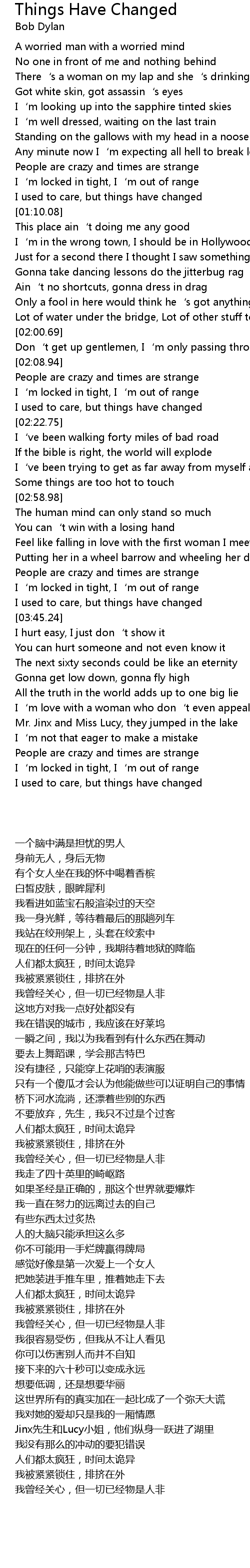 | [03:22.83] | People are crazy and times are strange |