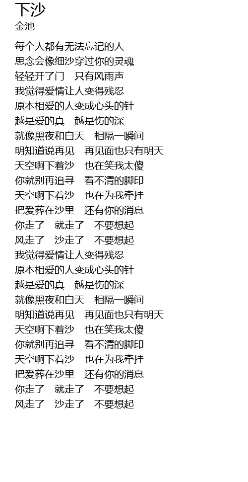 | [02:03.390] | 风走了 沙走了 不要想起 |