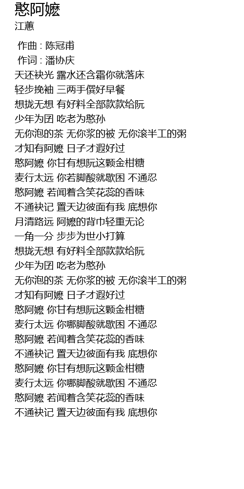 | [02:41.380] | 憨阿嬷 你甘有想阮这颗金柑糖 |
