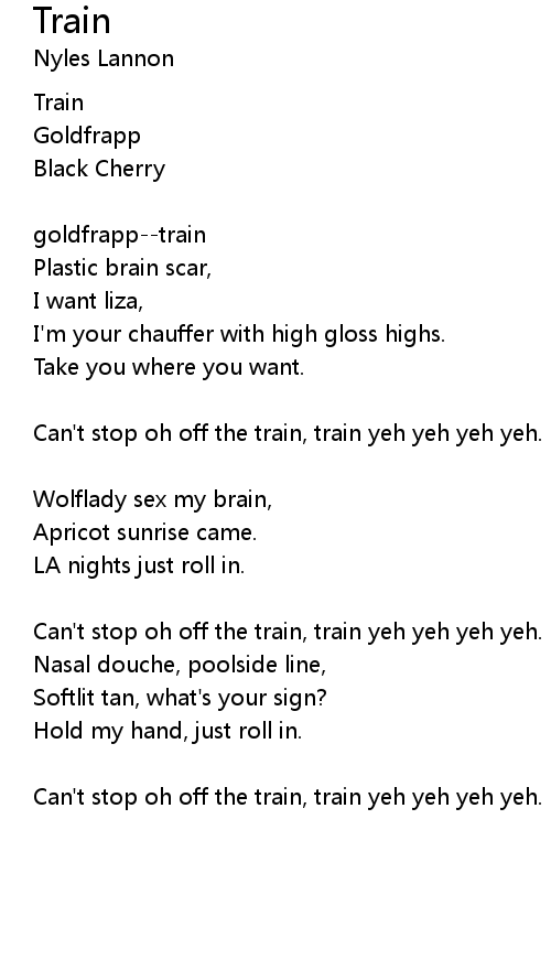 | Can't stop oh off the train, train yeh yeh yeh yeh. |