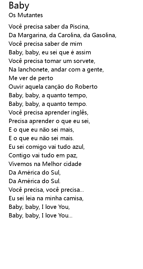 | Baby, baby, eu sei que e assim | |