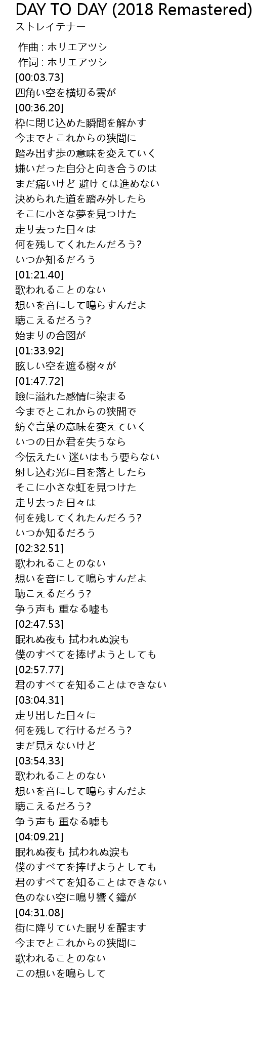 | 歌曲 | DAY TO DAY (2018 Remastered) |