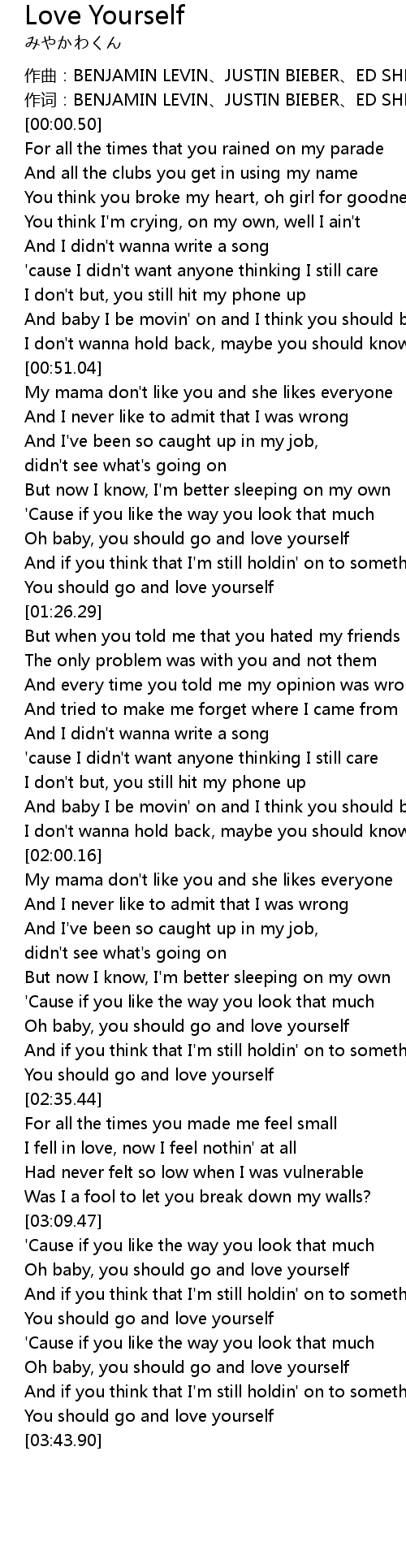 | [03:24.38] | You should go and love yourself |
