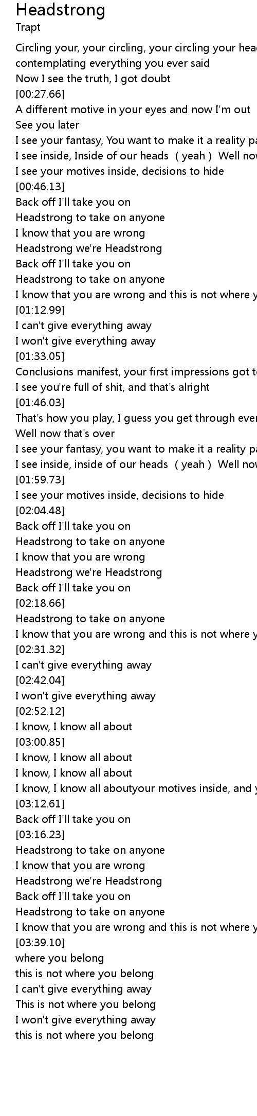 | [03:21.99] | Headstrong we' re Headstrong |