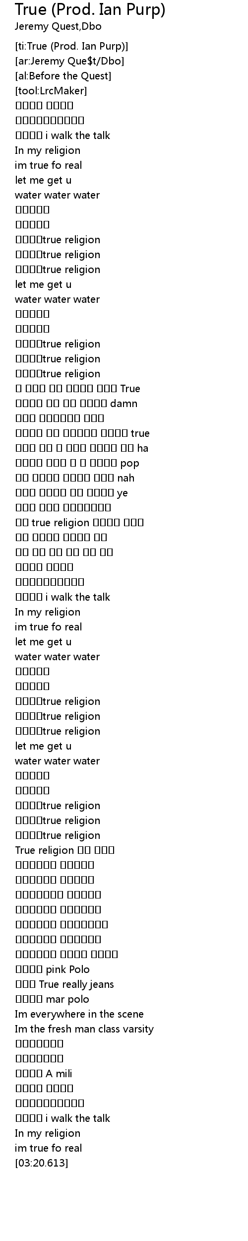 | [ti:True (Prod. Ian Purp)] | |