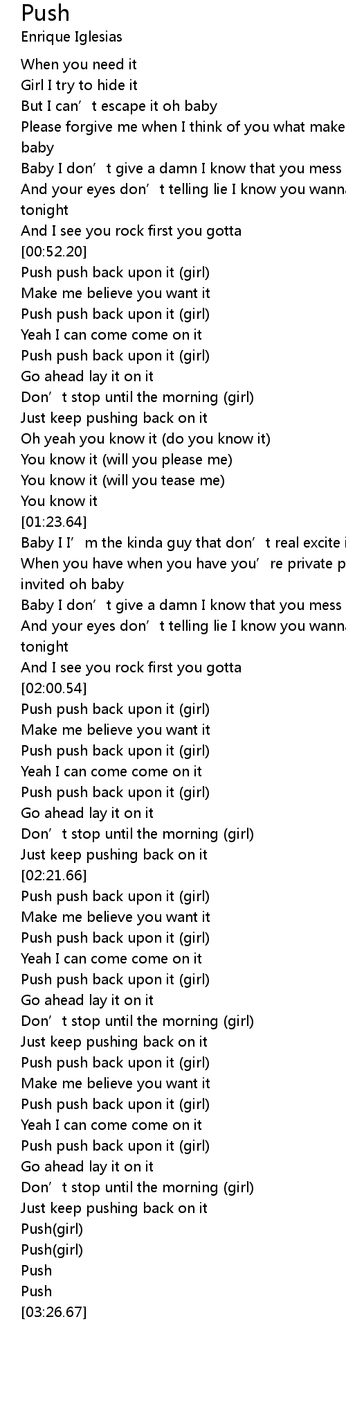 | [02:01.51] | Push push back upon it (girl) |