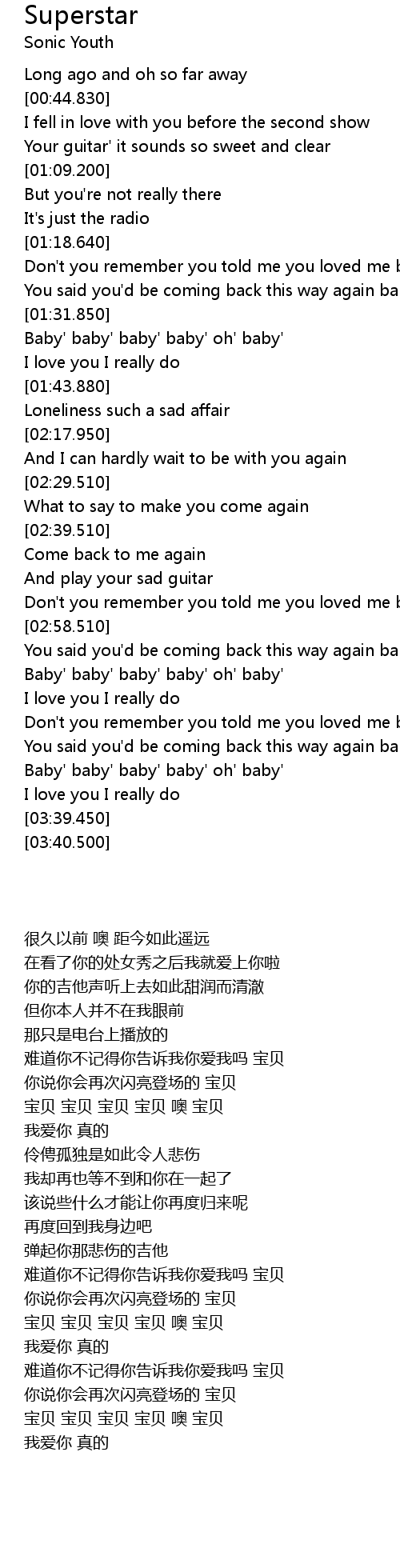 | [03:23.450] | 你说你会再次闪亮登场的 宝贝 |