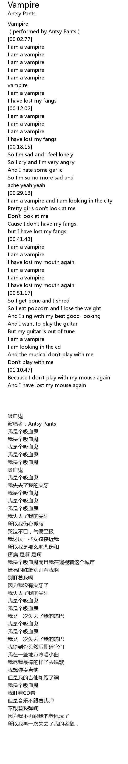 | [00:47.71] | I am a vampire |