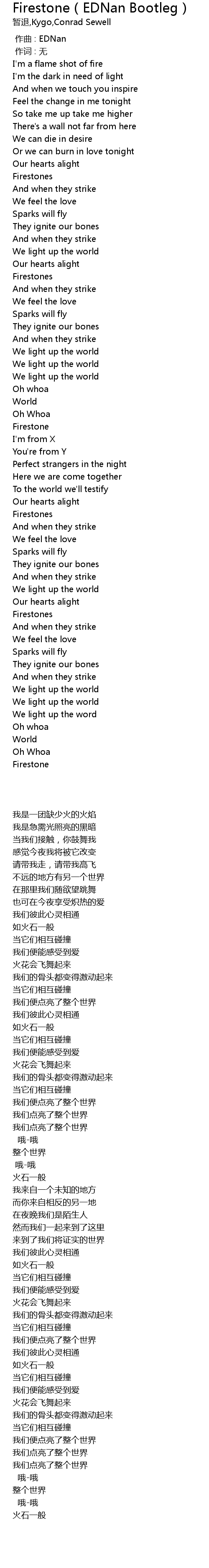| 歌曲 | Firestone(EDNan Bootleg) |