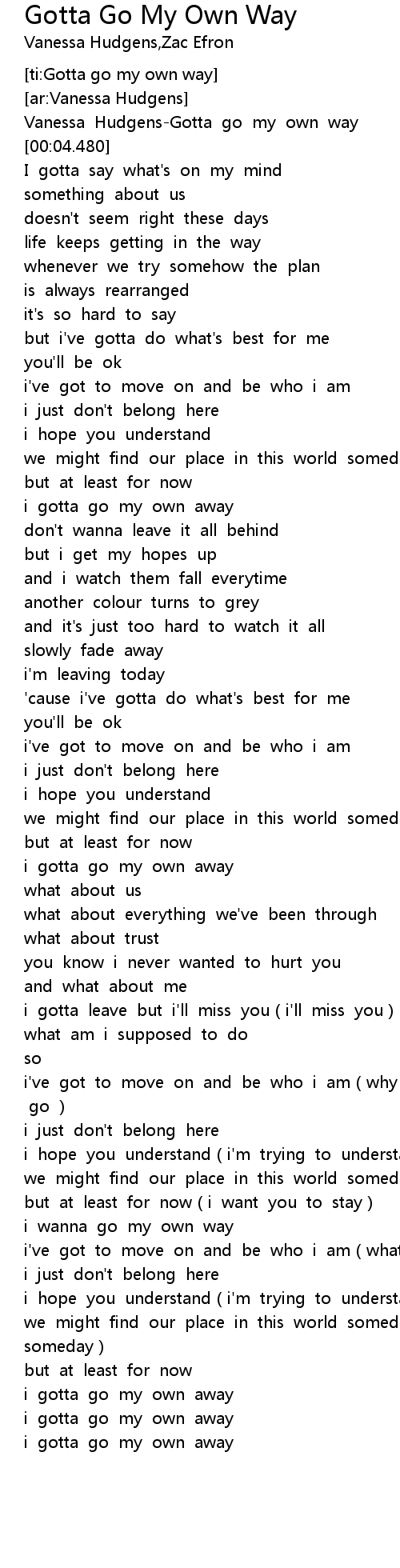 | [00:01.85] | Vanessa Hudgens-Gotta go my own way |