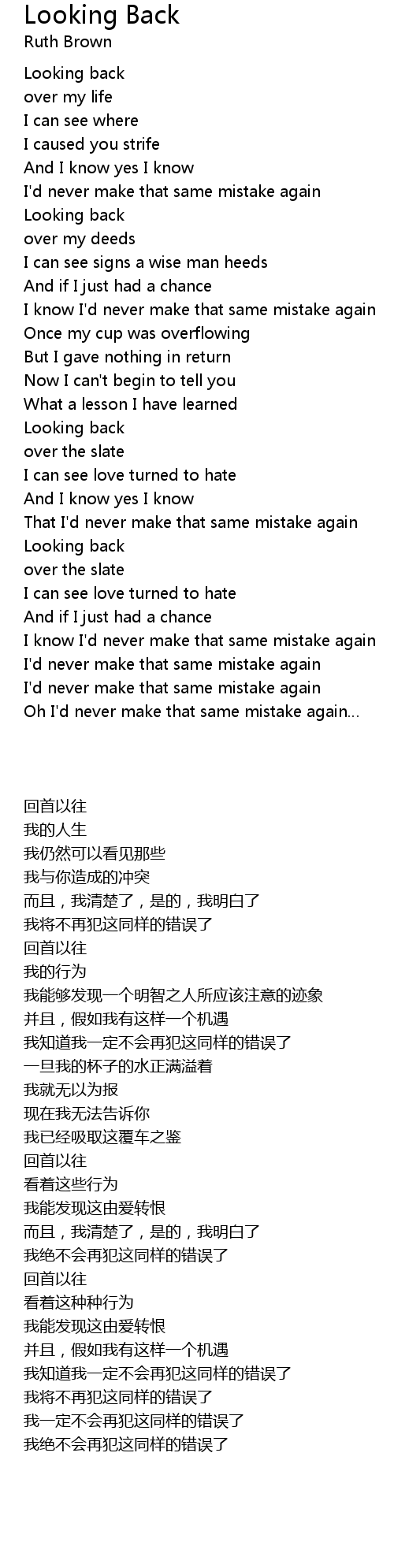 | 歌曲 | Looking Back |