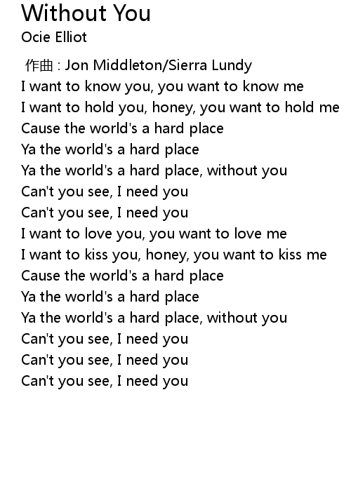 | [01:00.24] | Ya the world's a hard place, without you |