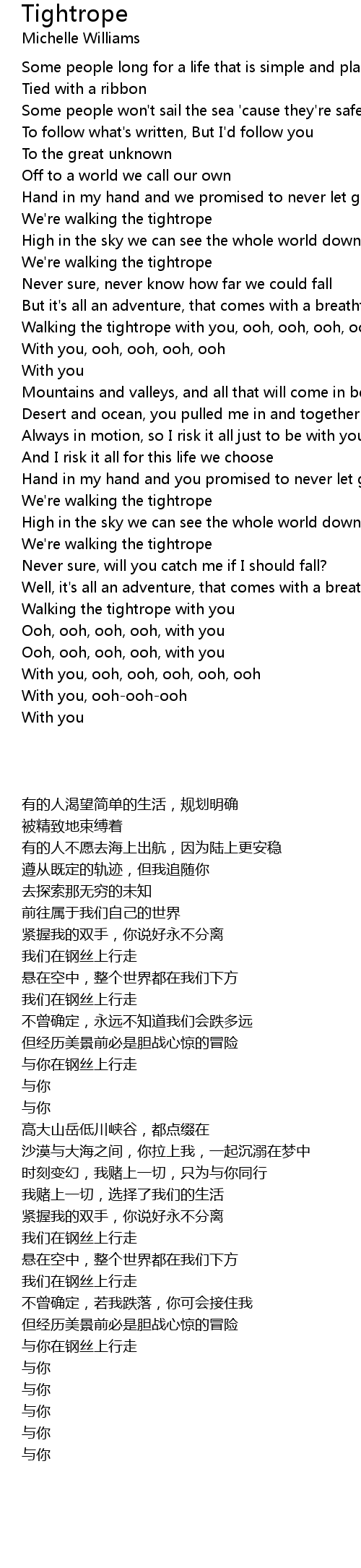 Walking the tightrope with you, ooh, ooh, ooh, ooh |