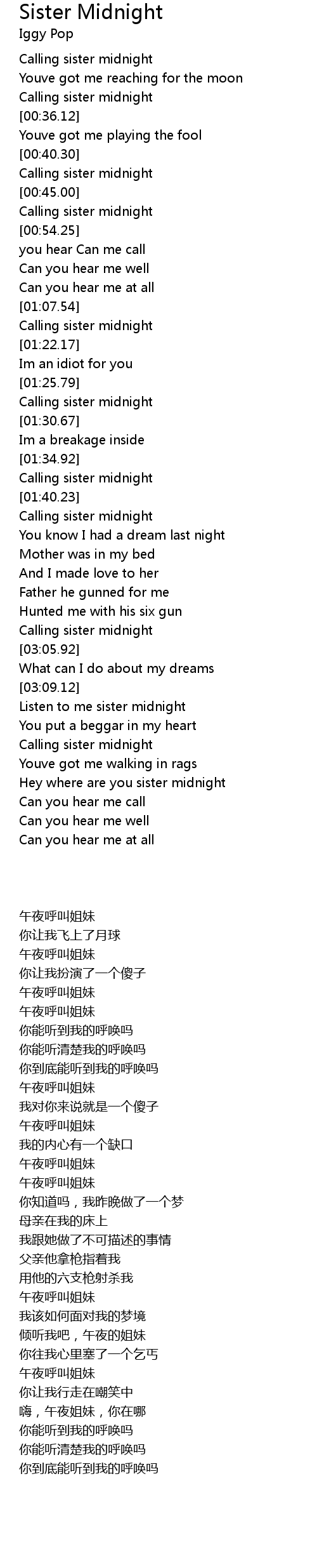 Calling sister midnight |