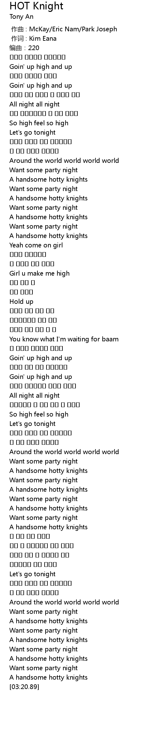 | [03:18.40] | A handsome hotty knights |