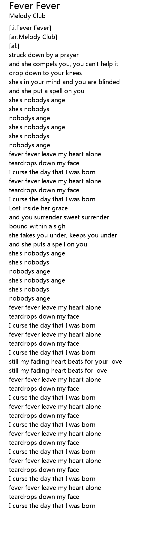 fever fever leave my heart alone |