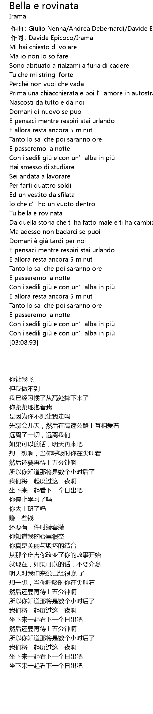 | [00:01.000] | 作词 : Davide Epicoco/Irama |