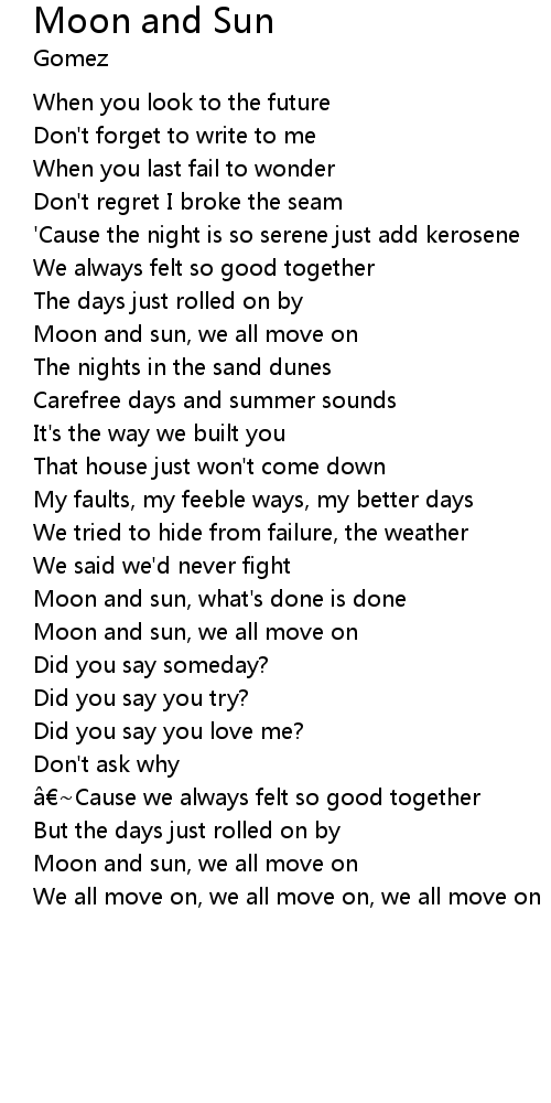| Moon and sun, what' s done is done | |