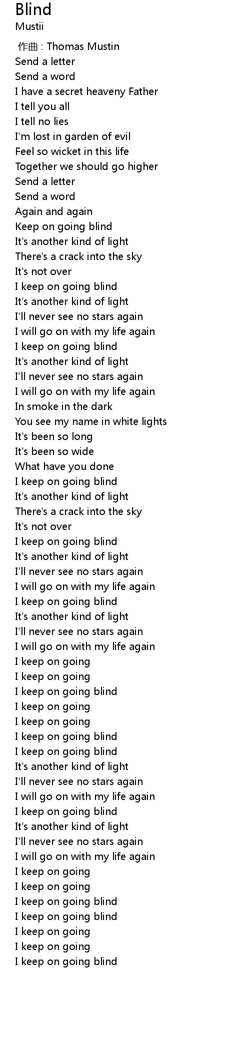 | [00:36.82] | Keep on going blind |