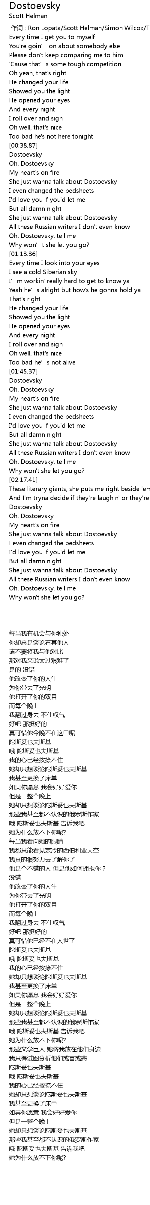 | [00:40.37] | Oh, Dostoevsky |