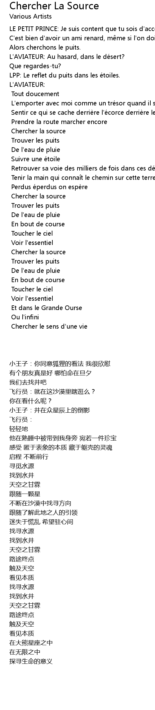 | 歌曲 | Chercher La Source |