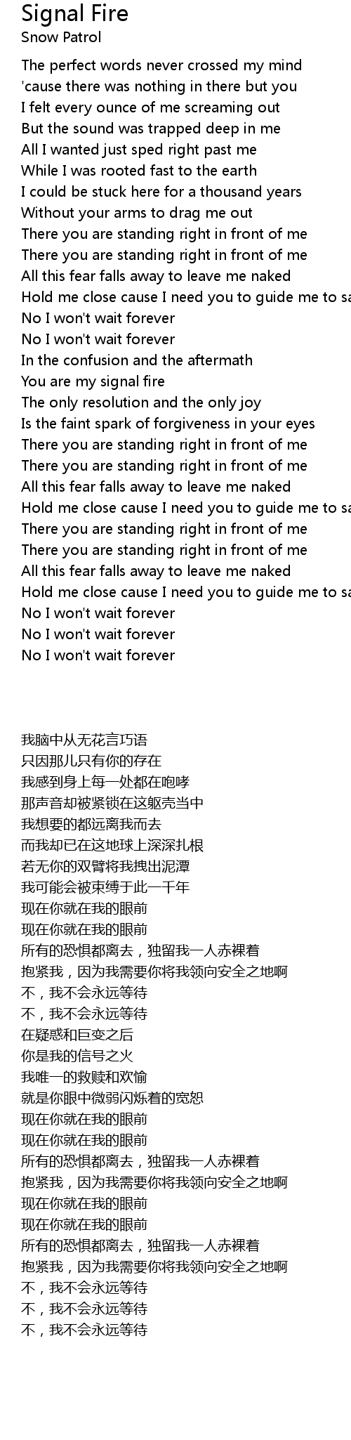 | [02:04.580] | You are my signal fire |