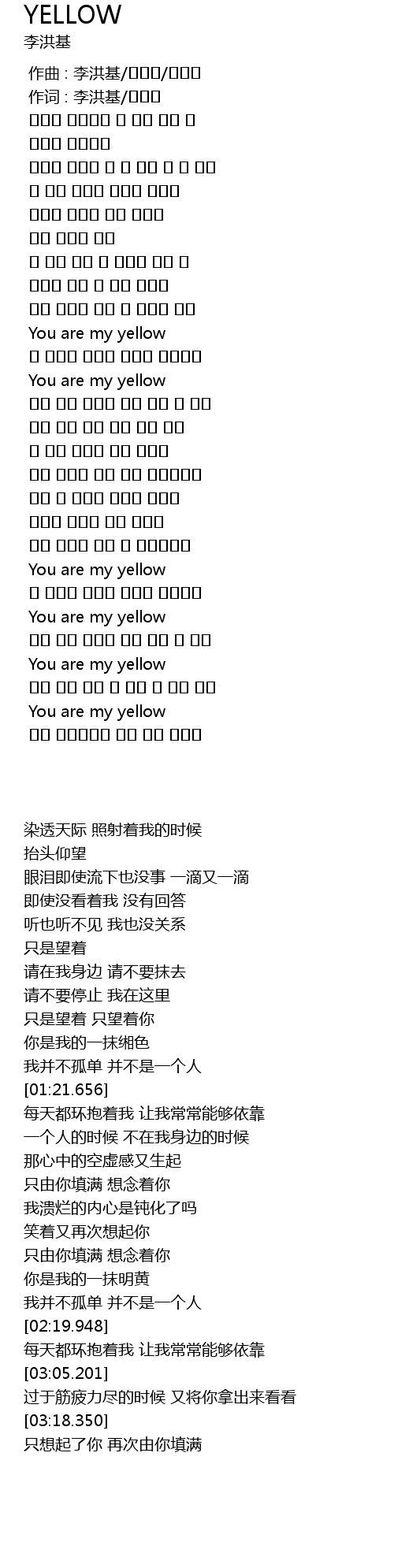 | [03:18.350] | You are my yellow |