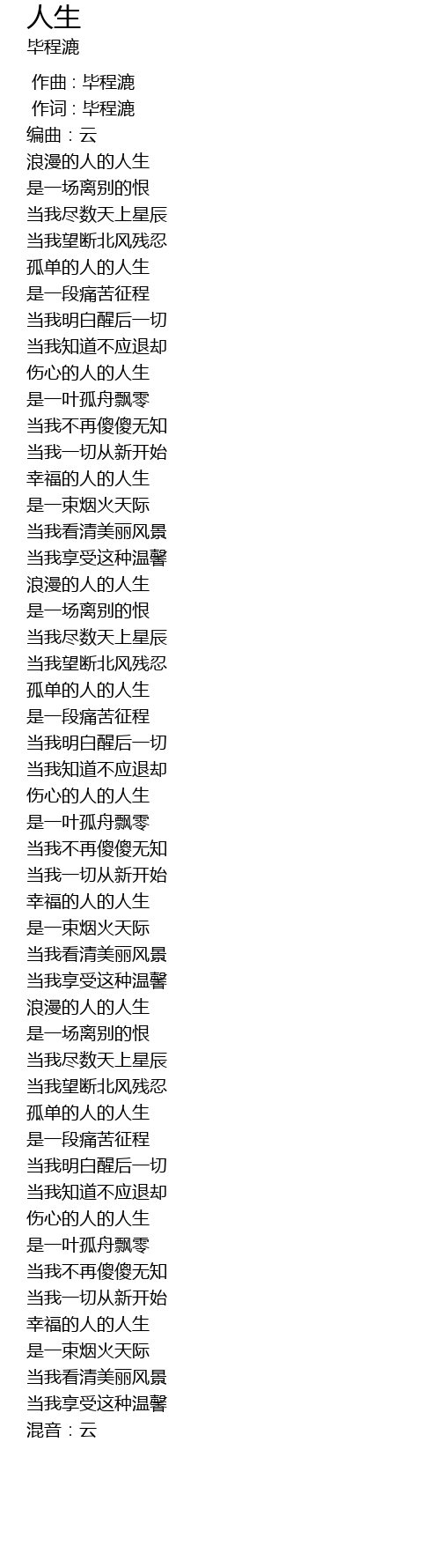 | [04:20.04] | 孤单的人的人生 |