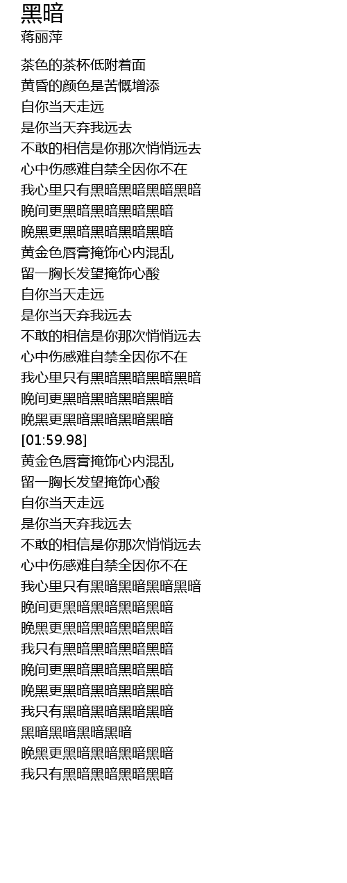 [01:45.98] 我心里只有黑暗黑暗黑暗黑暗