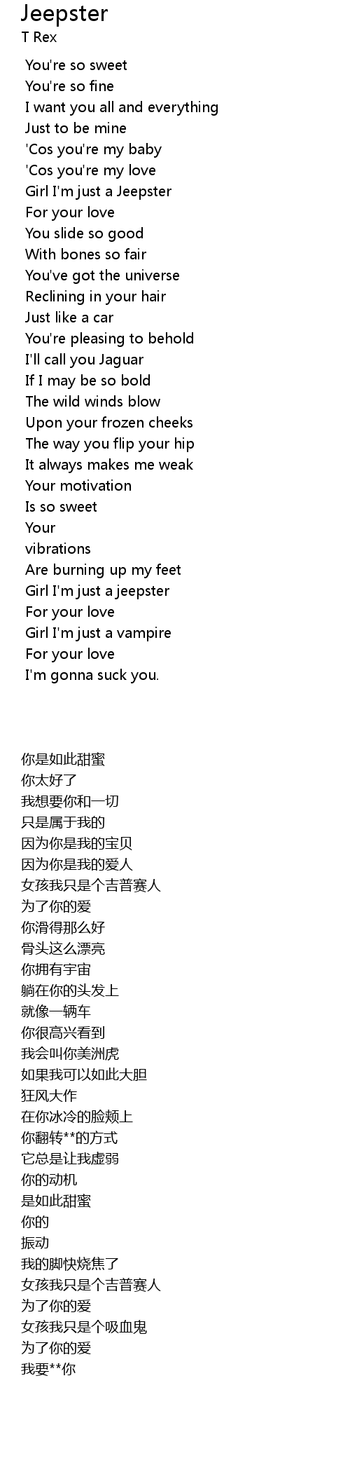 | [00:39.330] | Girl I' m just a Jeepster |