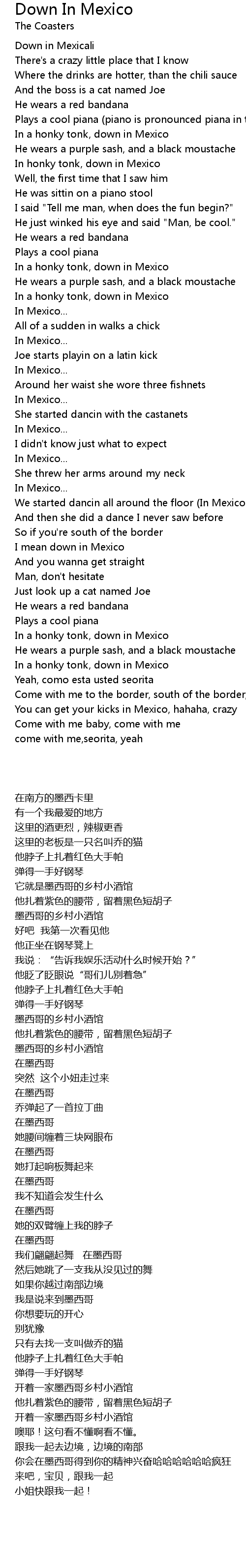 | [00:47.360] | In a honky tonk, down in Mexico |