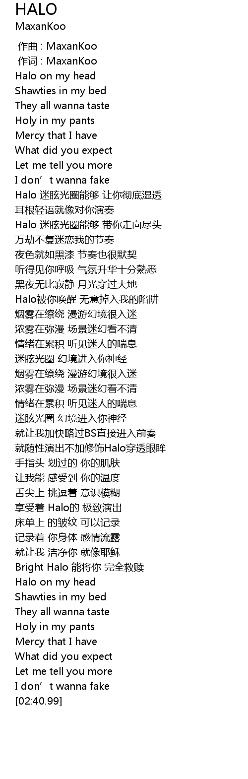 | [01:57.89] | 享受着 Halo的 极致演出 |