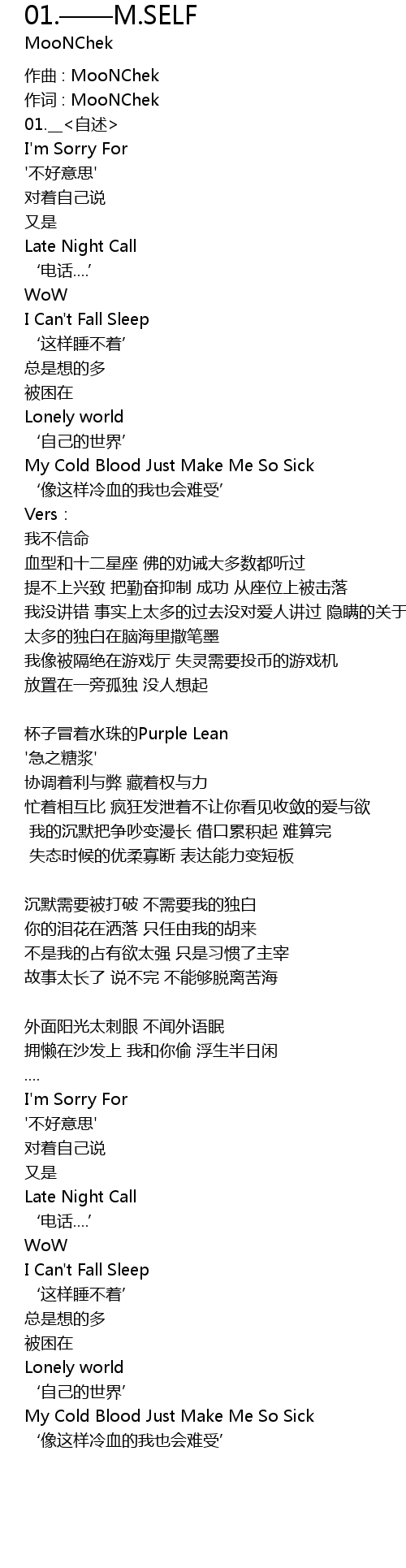 | 歌曲 | 01.——M.SELF |